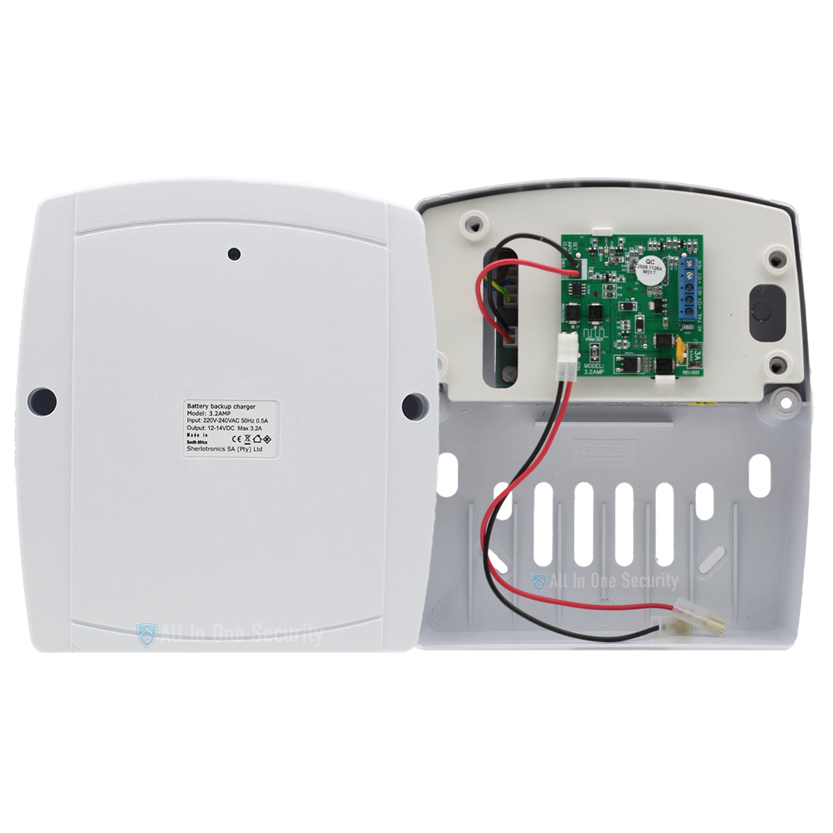 The Sherlotronics 12V 3.2Amp Battery Backup Power Supply is a reliable and intelligent power solution designed for security and access control systems. Featuring microprocessor-controlled charging, low battery cut-off, audible alerts, and built-in fuse protection, it ensures uninterrupted backup power for alarm panels, CCTV, door controllers, and magnetic locks—all housed in a durable ABS enclosure.