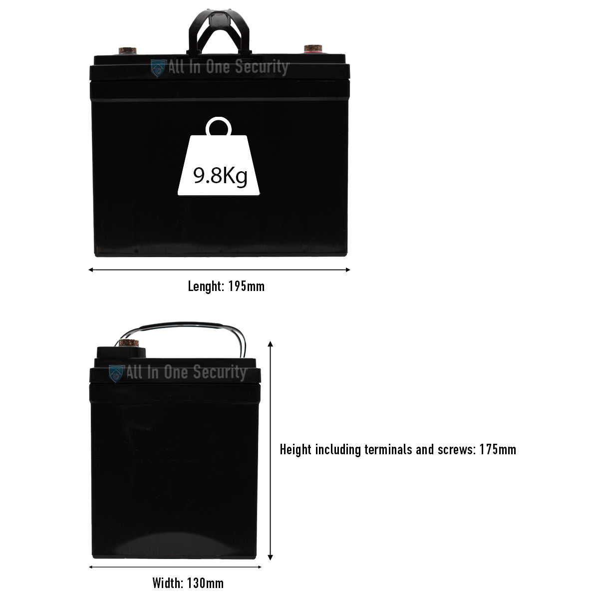Product Dimensions (including terminals) 195mm (l) x 130mm (w) x 175mm (h)