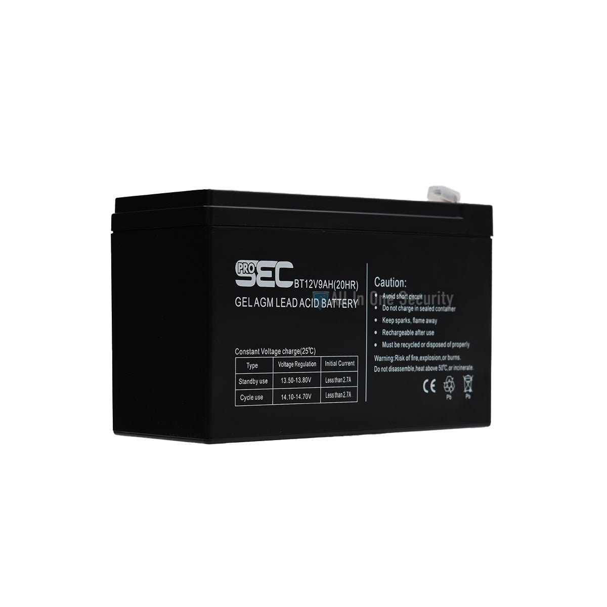 Features of the ProSec 12V 9Ah Gel battery: